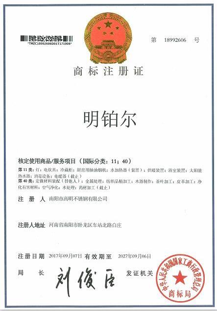 明鉑爾®國家商標(biāo)知識產(chǎn)權(quán)榮譽證
